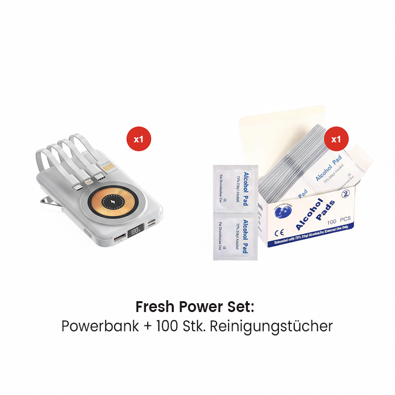 LEISTUNGSSTARKE KRAFT – Mit einem 10.000-mAh-Akku mit hoher Energiedichte liefert diese Powerbank zuverlässige Energie für mehrere vollständige Aufladungen des Telefons. Die Schnellladeversion unterstützt bis zu 22,5 W kabelgebundene Leistung und 15 W kabelloses Laden. Eine kompakte Lösung, die hohe Kapazität mit schneller Lieferung für den täglichen Gebrauch kombiniert. Ganz gleich, ob Sie Ihr Handy zwischen zwei Meetings oder auf einer langen Reise aufladen möchten, Sie bleiben ohne Unterbrechung verbunden.